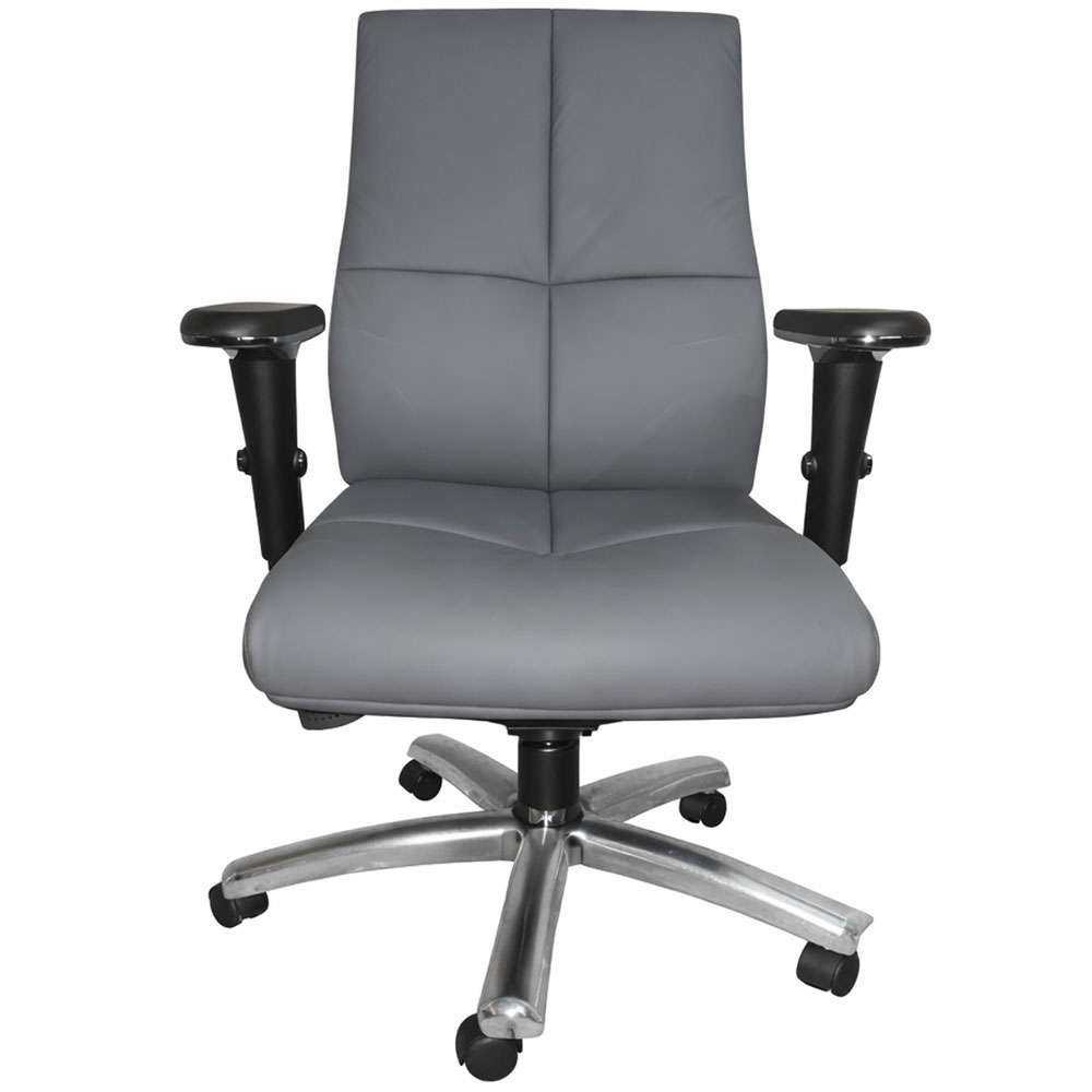 Upholstered in premium grey PU leather High-back design for enhanced back support Thick padded seat and backrest for comfort Adjustable armrests for added flexibility Smooth 360° swivel function Height-adjustable gas lift mechanism Strong metal five-star base with castor wheels Ideal for executive offices