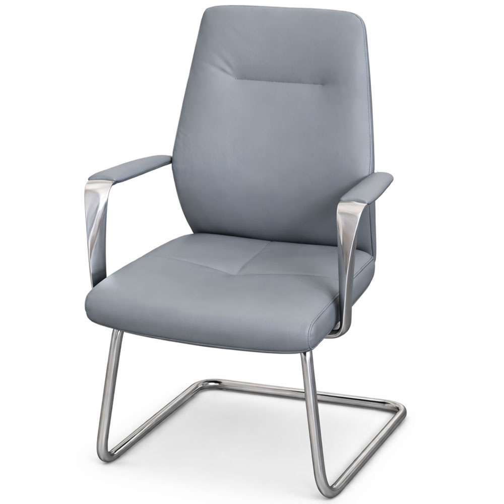 Upholstered in premium grey PU leather High-back design for enhanced comfort and support Thick padded seat and backrest Fixed chrome armrests with soft padding Strong chrome cantilever frame for stability Modern, elegant office appearance Easy to clean and maintain Ideal for reception areas, boardrooms, and meeting rooms